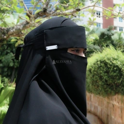 Niqab Poni Style Saudi Sifon Silk Jetblack