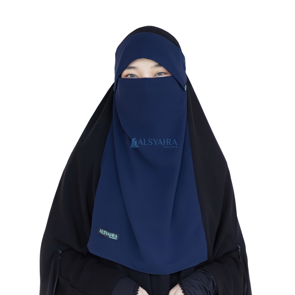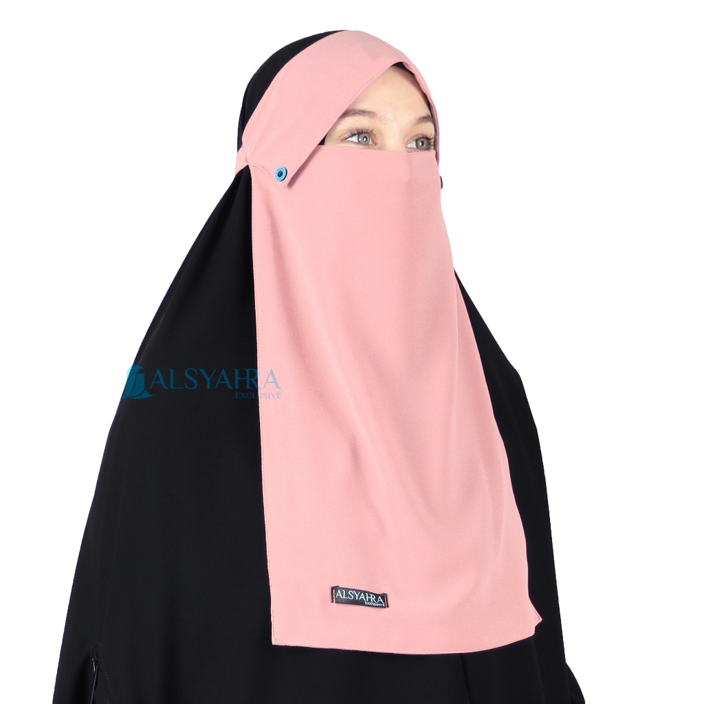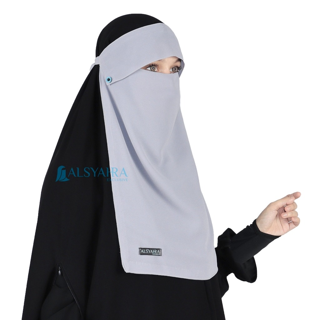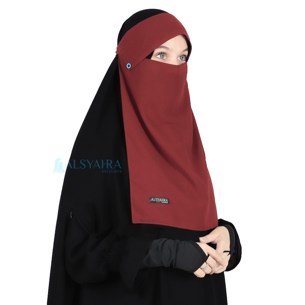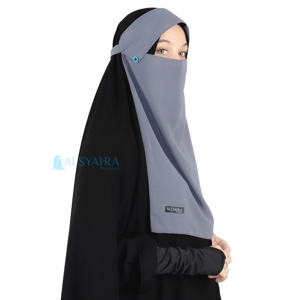 Niqab ini berbentuk poni dengan terdiri dari dua style loh, artinya niqab ini ukhti bisa memakainya secara posisi layer poni di tarik ke atas atau ke posisi bawah menutupi alis (hidden eyes), wah wah. pada layer poni terdapat kancing khas Alsyahra di samping kanan dan kiri tentunya akan terlihat kian eksklusif saat digunakan.